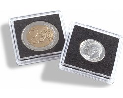 Las cápsulas de monedas QUADRUM Mini no sólo ahorran espacio, sino que ofrecen todas las ventajas del sistema QUADRUM: Gracias a que todas las cápsulas cuadradas tienen las mismas medidas (tamaño exterior: 38 x 38 x 6,4 mm), puede guardar monedas de diferentes tamaños en un mismo sistema – esto es válido para monedas con un diámetro de 10 mm a 29 mm.